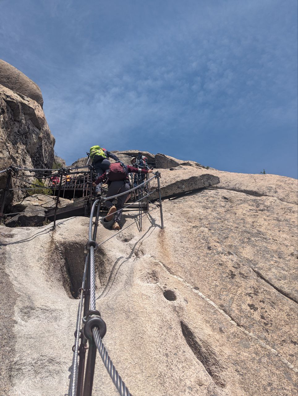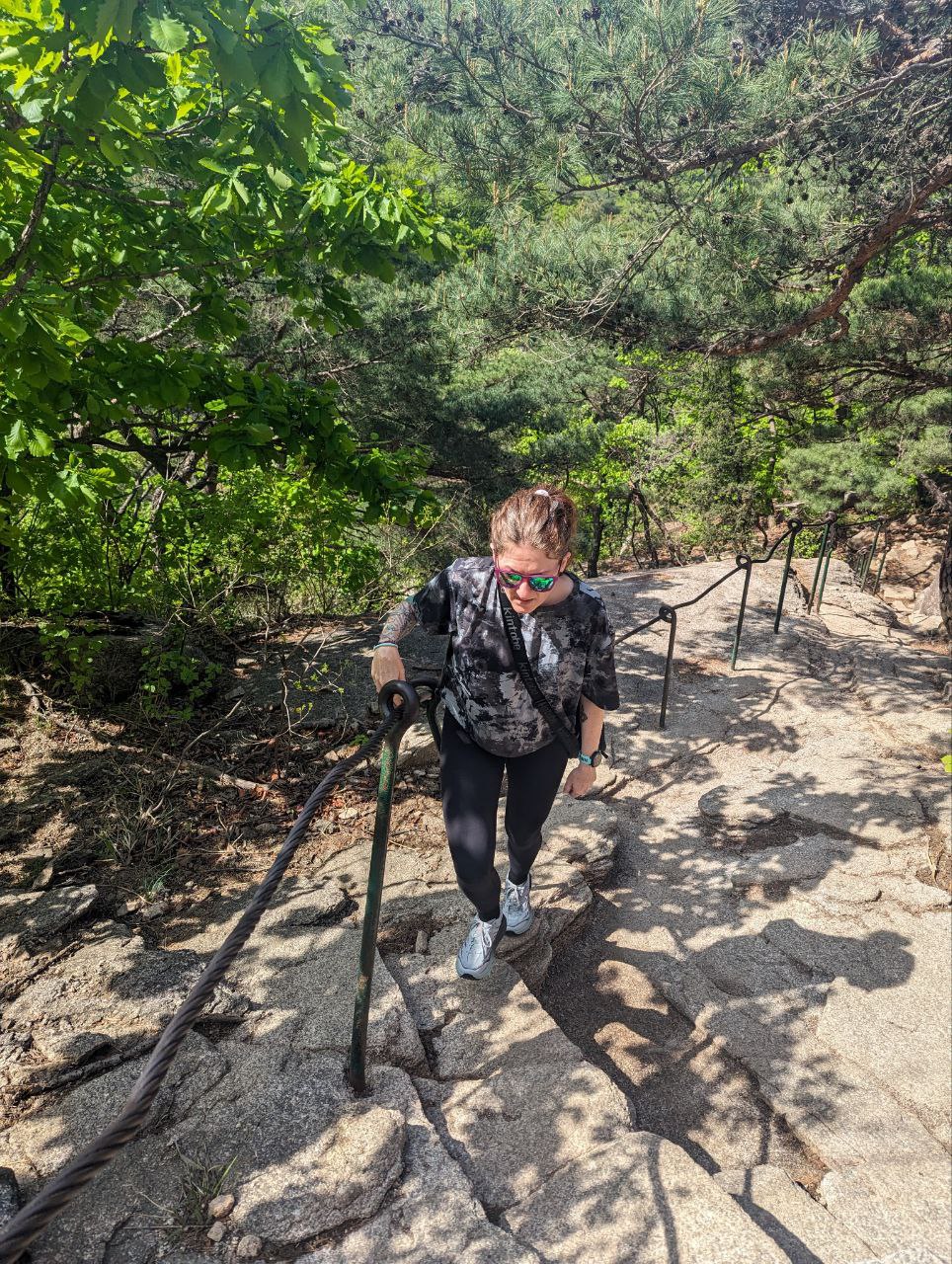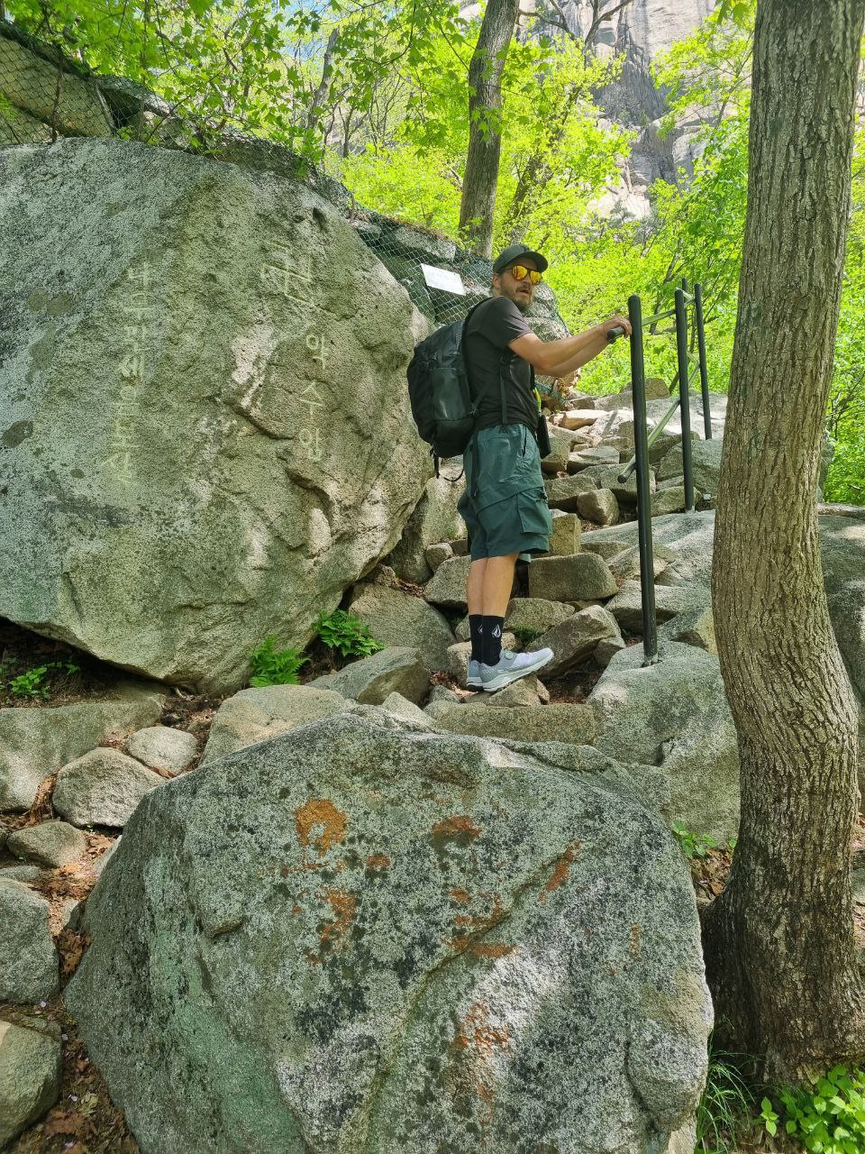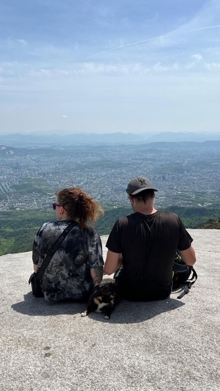 Efter at have gået vores nye sko en smule til med mere butiksvandring, var det næste dag tid til at udfordre os selv og udstyret maksimalt. Energiniveauet var som udgangspunkt ikke imponerende, for det er ærligt talt ikke let at finde ordentlig morgenmad i en by, hvor de fleste cafeer åbner kl 10-11, og ingen spiser morgenmad. Supermarkederne har måske lidt Frosties eller frugtyoghurt, hvis man er heldig. Derudover er vegetarudvalget i byen også begrænset, så vores kost var ikke nødvendigvis fordrende for større fysiske udfoldelser. Men pyt, vi havde et bjerg at bestige. Sammen med adskillige midaldrende koreanere i farvestrålende vandretøj, alt udstyr og alle accessories (i vidt forskellige farver) drog vi mod Bukhansan Nationalpark og Baegundae Peak. Vandreturen er på ca 8km og tog os i omegnen af 4 timer – for den er pokkerme stejl. Flere steder må man benytte de tykke stålwire-gelændere til at hive sig op på store sten. Men man bliver til gengæld belønnet med en fantastisk udsigt over Seoul fra 836 meters højde. Selve turen derop er igennem idyllerisk skov med små vandfald og flere venlige katte, så det er strabadserne værd. Men man skal huske bananer og Sneakers, ellers kan man altså ikke.