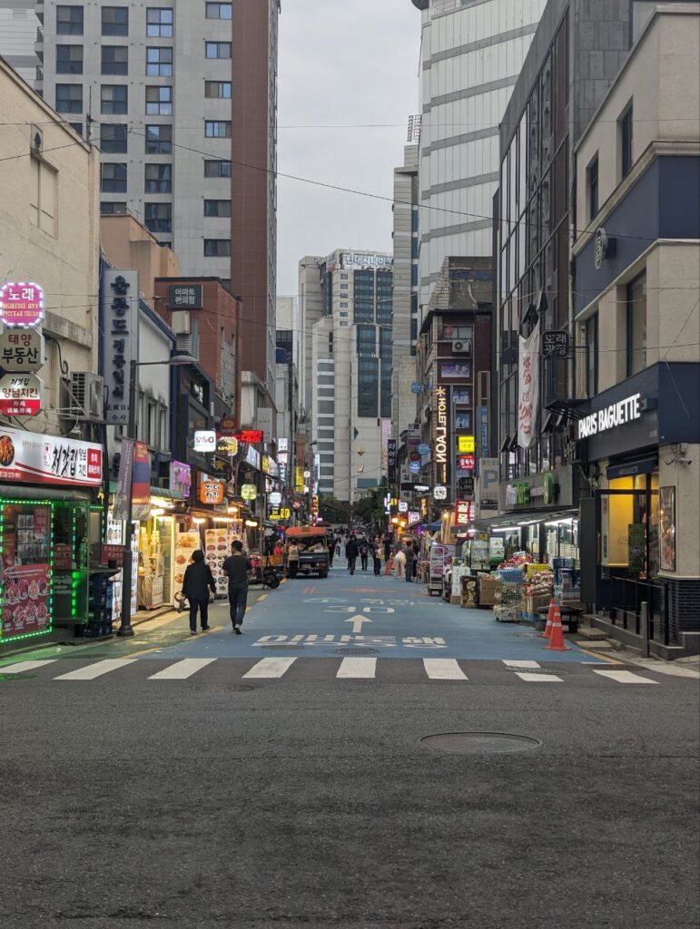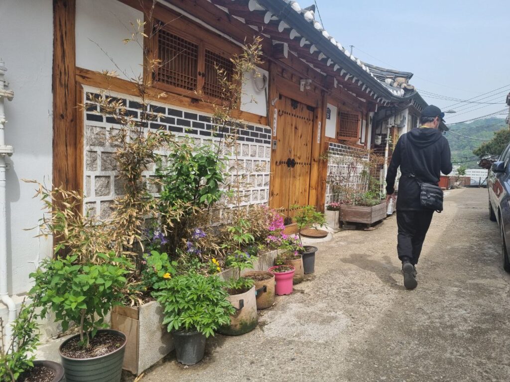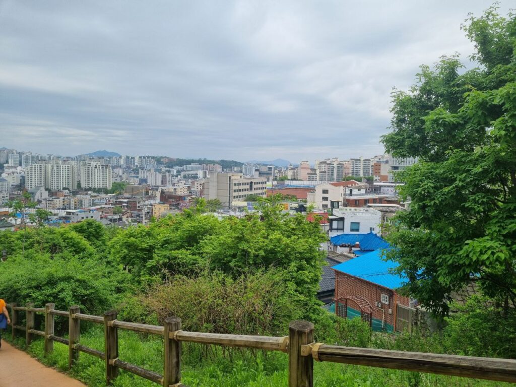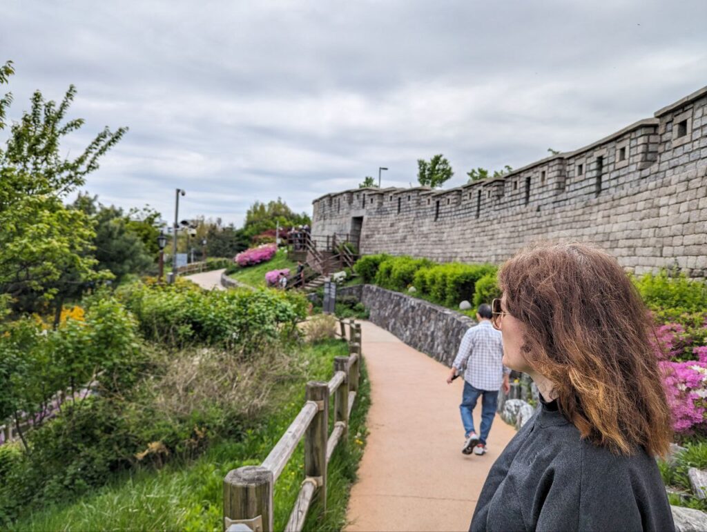 Så drog vi ellers på shopping; noget af det, vi havde set mest frem til i Seoul. For i modsætning til Syd- og Sydøstasien, er der ikke morderisk varmt på den her tid af året i Sydkorea. Den ene dag regnede det endda, og den næste var det kun 11 grader, da vi stod op! Totalt chokerende. Der var brug for at anskaffe lidt mindre sommeragtigt tøj og udstyr. Seoul er ikke billig at shoppe i, men de har alt og det udnyttede vi til fulde. Der blev blandt andet indkøbt trailrunner-sko, for der skal hikes nu, og det dur vores almindelige sneakers ikke til. Næste dag startede vi med en lille vandretur langs bymuren og blev gang på gang overraskede over, hvor hyggelig Seoul egentlig er. De har formået at få en by med 10 millioner indbyggere til at føles som en lille bjerglandsby med små snørklede og stejle veje, bittesmå huse (seriøst, selv deres 7-Elevens er så små og nuttede, at det næsten ikke er til at holde ud) og masser af træer og blomster. Og så er der cafeer overalt. Jamen, en slags paradis – hvis det ikke lige var for priserne, der ikke tåler sammenligning med Thailand.