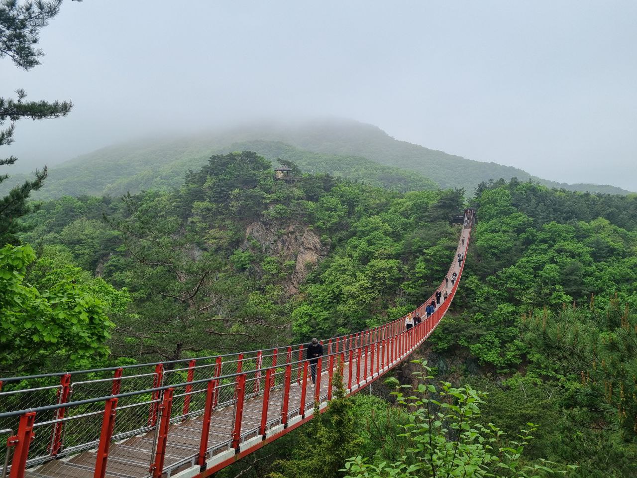 En af de aktiviteter, vi havde set mest frem til på Asien-etapen af rejsen, var turen til den koreanske demilitariserede zone, DMZ. Her lærte vi endnu mere om krigen og dens effekt på mennesker på begge sider af grænsen, både dengang og i dag. Vi gik en tur over en hængebro i et område, hvor engelske soldater var vilde under krigen. Det var fint nok, men nok mest for at have en lille pause på vej til DMZ’en. Så et besøg i en park med mindesten for de millioner af koreanere, der stadig ikke har fundet eller har kontakt til familiemedlemmer på den anden side af grænsen; et museum for de mange kidnappede sydkoreanere, der aldrig er vendt tilbage; og den eneste tilbageværende jernbane, der stadig er forbundet til Nordkorea. Der var også en lille forlystelsespark, for ellers gider koreanske børn ikke med forældrene op og mindes. Herefter tog vi til den 3. infiltreringstunnel. Sydkorea har indtil videre fundet 4 tunneller, nordkoreanerne har gravet i et forsøg på at nå Seoul under jorden. Vi fik fine hjelme på og kunne more os med at gå og lytte til alle dem – inkl os – der konstant bankede hjelmen op i loftet i den lave tunnel. For enden af tunnellen var vi kun 170 meter fra grænsen til Nordkorea! Vildt nok. Vi måtte dog ikke tage billeder dernede. Det måtte vi til gengæld på observatoriet, der udgjorde næste stop. Her var der rækkevis af store kikkerter, hvor vi kunne glo direkte på Nordkorea. Vi spottede både soldater og bønder på den anden side. En nærmest surealistisk oplevelse.