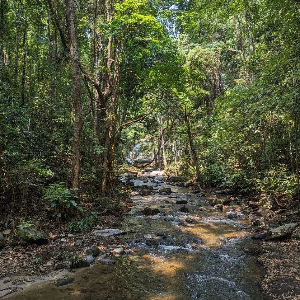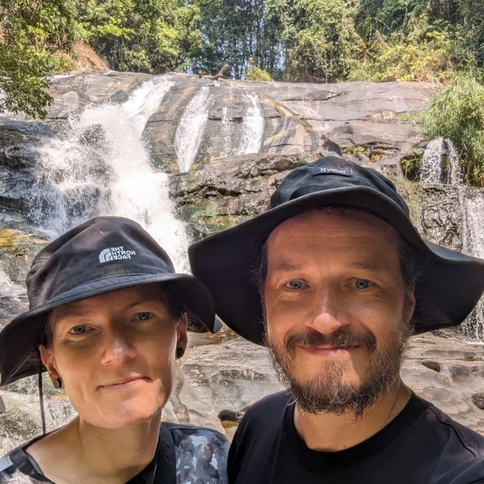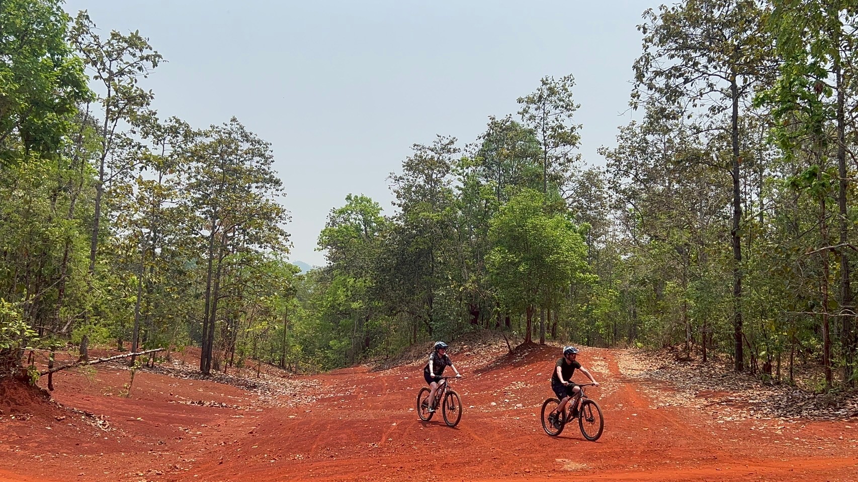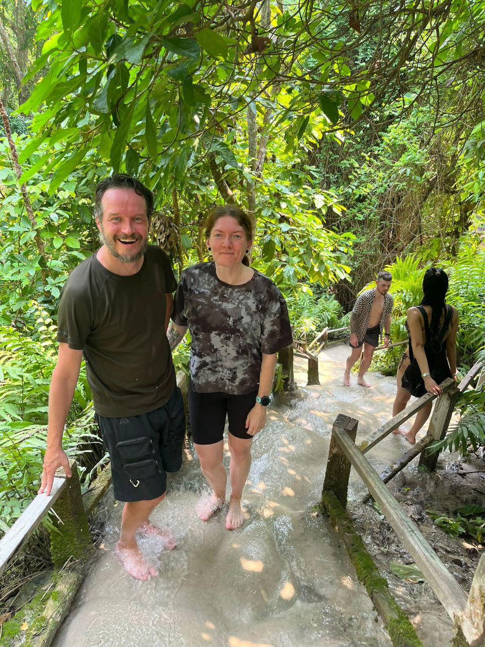 Vi brugte derfor de sidste dage “hjemme” med et par ture til lokale markeder om aftenen. Morten skrantede stadig lidt, men var heldigvis sådan nogenlunde frisk nok til en mountainbiketur til Sticky Waterfalls. Turen var på 30km i næsten 40 grader og med hidsig luftforurening fra nye brænde natten før. Så vi var begge mildest talt smadrede, da vi nåede vejs ende. Men selskabet havde været fabelagtigt, og det var overraskende spøjst at kravle op ad de ru vandfald.