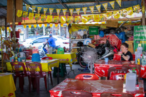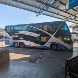 Så gik turen til Phuket. Vi havde kun booket 2 dage, da vi egentlig ville videre til Koh Samui, og ikke har hørt ret meget godt om stedet. Koh Samui blev erstattet af Bangkok, for nu skal vi have en pause fra strandhalløjet, og Phuket var ikke så frygteligt, som vi havde troet, men det var kedeligt og russerne er ved at have overtaget skidtet. Så et par gåture i Phuket Old Town var alt rigeligt. Derfor sprang vi onsdag eftermiddag på en gigantisk dobbeltdækkerbus med kurs mod Bangkok, hvor vi – stik imod alle odds – ankom helskindede torsdag kl. 4 og indtil videre har ventet i hotellobbyen i ca 5 timer i håb om tidlig check-ind, en lur og et brusebad. Når det er sket, står den for alvor på storby!