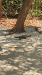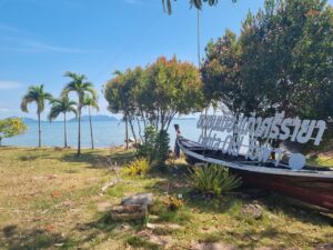 Snorkling! En nærmest obligatorisk aktivitet på de thailandske øer, og Koh Lanta skulle være et af de bedre steder, så vi bookede fluks en heldagstur til Koh Rok og Koh Haa med frokost og det hele. Snorklingen var vældig og kun lidt søsygefremkaldende. Vi så både klovnefisk (eller “so many Nemos!”, som en anden gæst udbrød), andre farvestrålende og neonfarvede fisk, søstjerner, søpindsvin, store vandmænd og millioner af bittesmå vandmænd, så der kom vi ok hurtigt op af vandet igen og blev fragtet til et mere tilforladeligt snorkelområde. Vi så dog hverken skildpadder eller hajer eller noget. Under den overdådige frokost på stranden kom der dog en fin varan på besøg. “Kolla varanan!”, råbte en svensk turist, og det gjorde vi så.