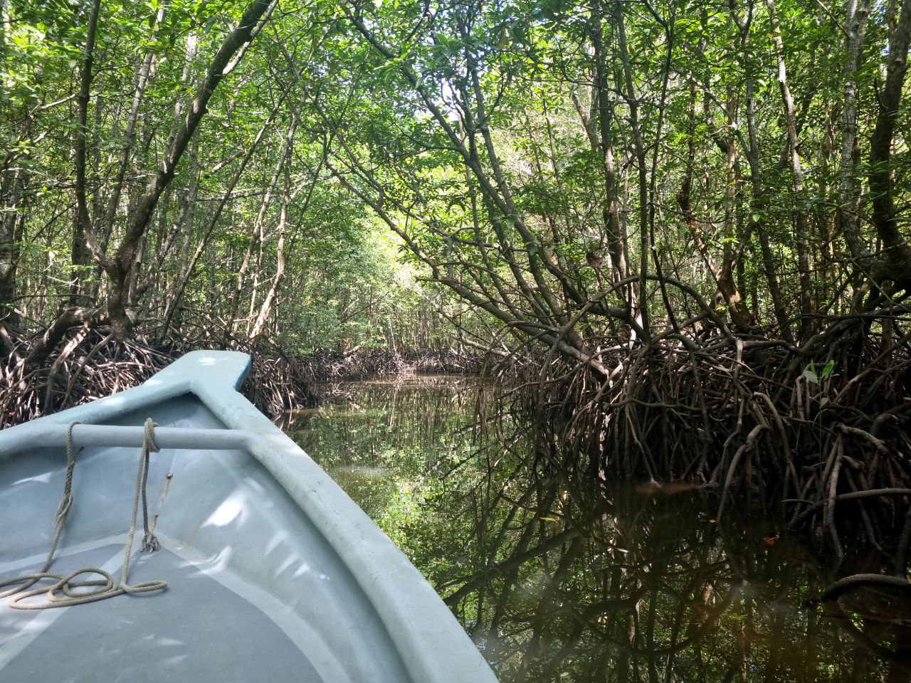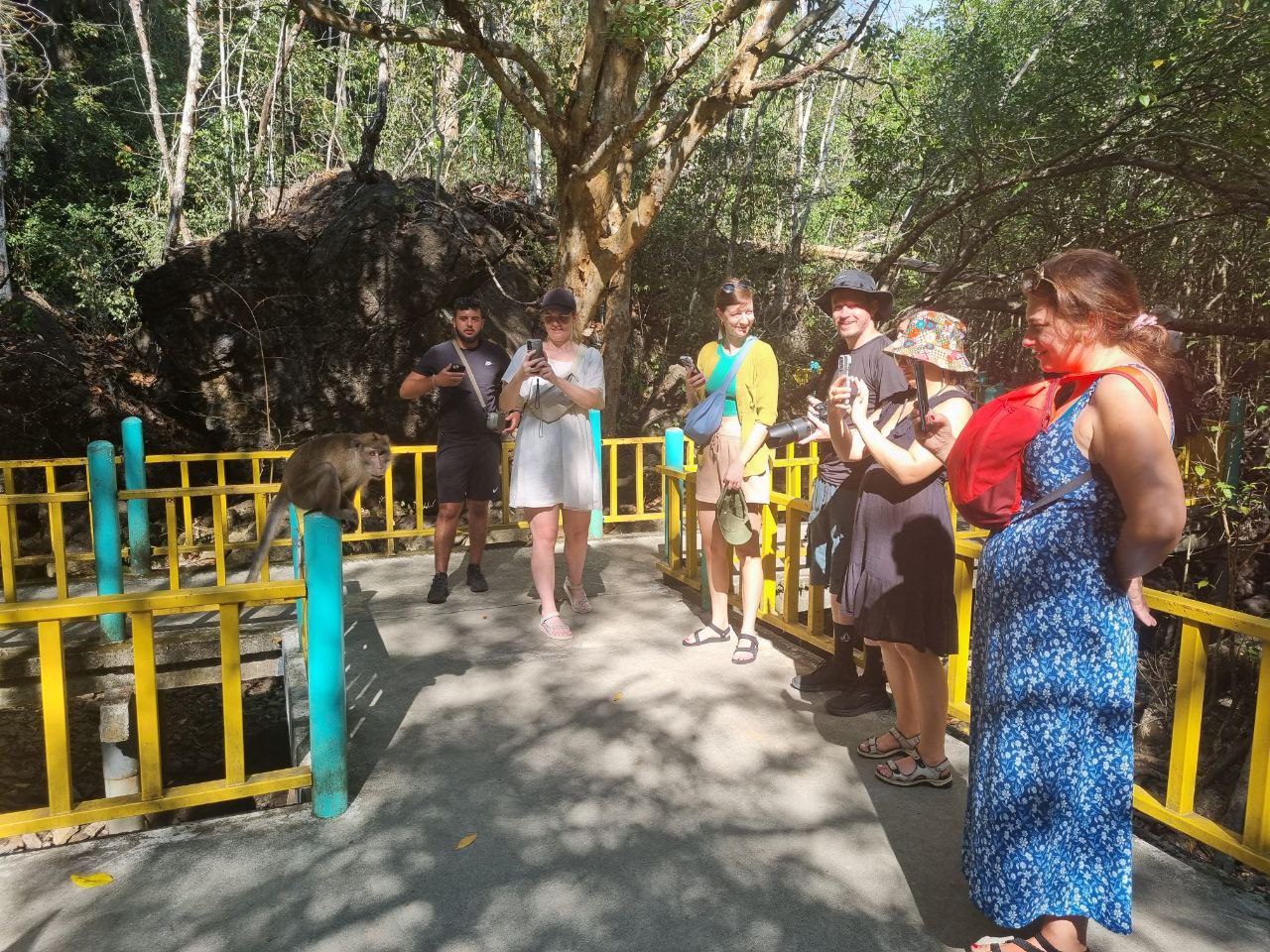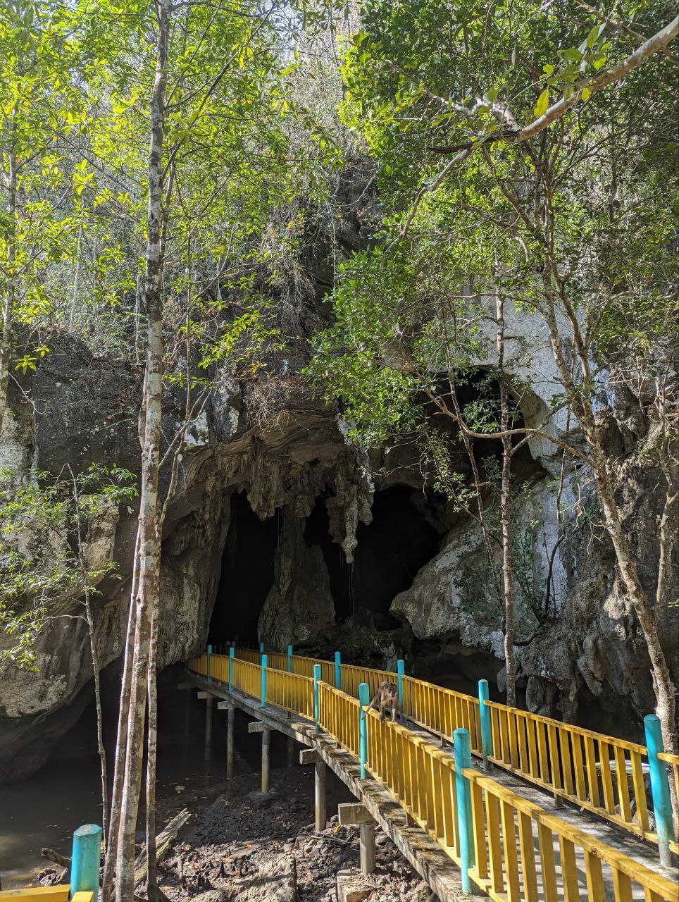 Langkawi selv består mestendels af jetski, turister og et ekstremt UV-index. Men heldigvis også af fantastisk natur, tyvagtige aber og afslappethed. Og masser af mundgodt! I George Town lærte vi, at det miderste af dagen ikke er et godt tidspunkt at være ude i vejret, så vi startede med at booke et hotel med pool og et skyggefuldt chillaxing-område med hængestole og kolde drikke. Det er blevet til en del timer med computer og Kindle, mens vi ventede på, at solen skulle slappe lidt af. Men vi tog dog en dag på en køligere (altså tålelig) bådtur i mangroven, hvor vi besøgte en hule fyldt med flagermus, et skovområde fyldt med aber og ørne og en strand fyldt med smukke udsigter. Vi så også en del store fisk og en meget lille slange. Guidede gruppeture er en god måde at møde andre rejsende på, og vi har allerede mødt flere langtidsrejsende at udveksle erfaringer med. Vi kan også konkludere, at 80% af ikke-Singaporeanske turister i Malaysia er fra Holland. Af samme grund bliver vi også hele tiden forvekslet med hollændere (eller i hvert fald én gang). Bare en lille fun-fact, vi næsten selv har fundet på. Her kommer et mindre uddrag af billeder fra mangrove-turen: