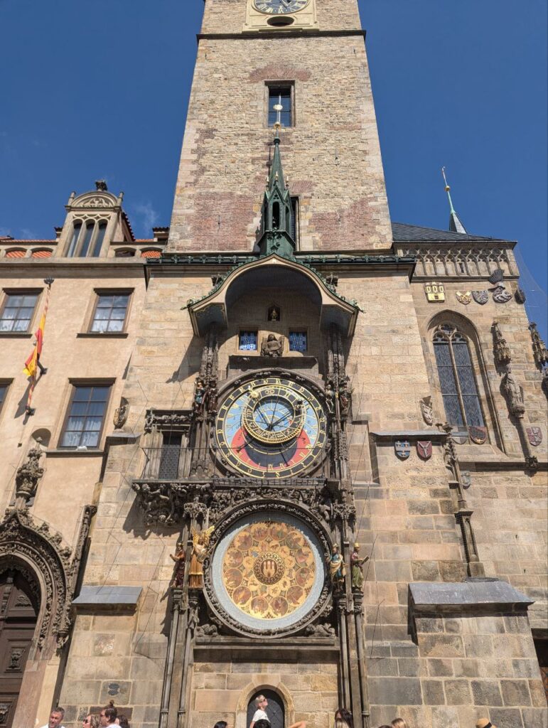 - Verdens 2. mest skuffende turistattraktion – når figurerne på det ellers ret imponerende astronomiske ur (fra 1410!) danser én gang i timen. Vi tog ikke billeder af dansen, for man kan knap se det med det blotte øje, så nyd i stedet bare et billede af uret. Flooot!